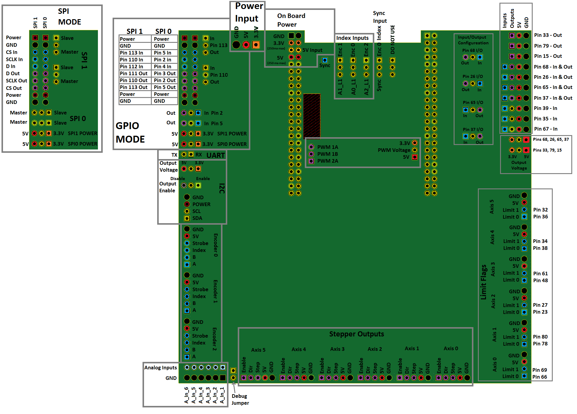 Our IB01R1 interface board allows coordinated motion of up to 6 Stepper-drive axes when combined with a standard BeagleBone Black, Rev C SBC. In addition to coordinated motion, the IB01R1 has a variety of additional IO connections for your customized applications.